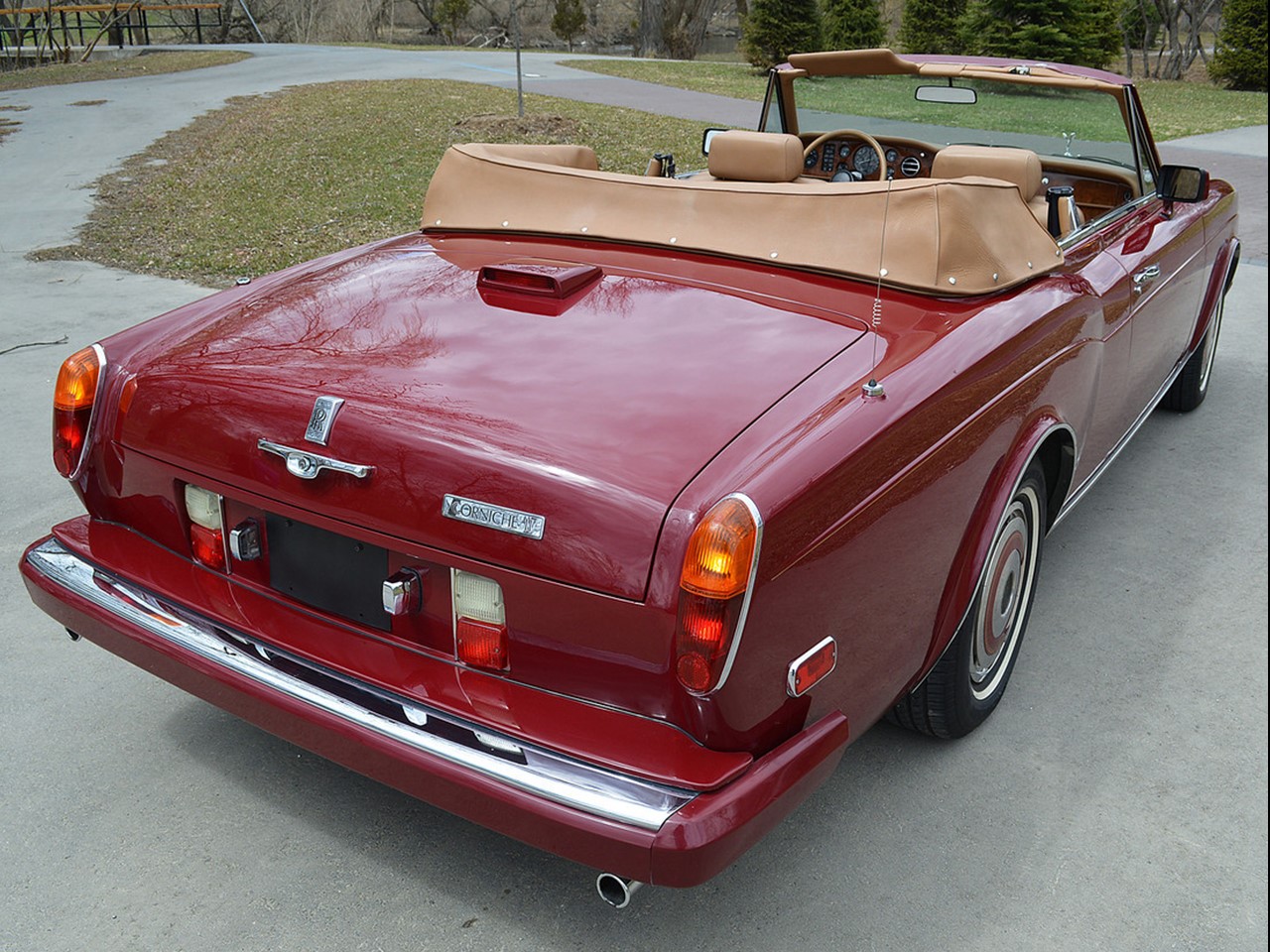 This magnificent motorcar is powered by “old faithful” the standard Rolls-Royce 6.75 litre V8. It moved the Corniche with aplomb. It’s block is made of aluminium-silicon alloy. The cylinder heads are aluminium with cast iron wet cylinder liners. The model depicted here is a 1974 and is fitted with twin SU carburetors. The horrid Solex 4A1 4-bbl replaced the twin carburetors for the 1977 model year. Bosch fuel injection was added for the 1980 model year. The GM Turbo Hydra-Matic 3-speed fully automatic transmission was mated to the engine. It is equipped with a torque converter and electric gear range selector. It has a single piece propeller shaft and hypoid bevel final drive.