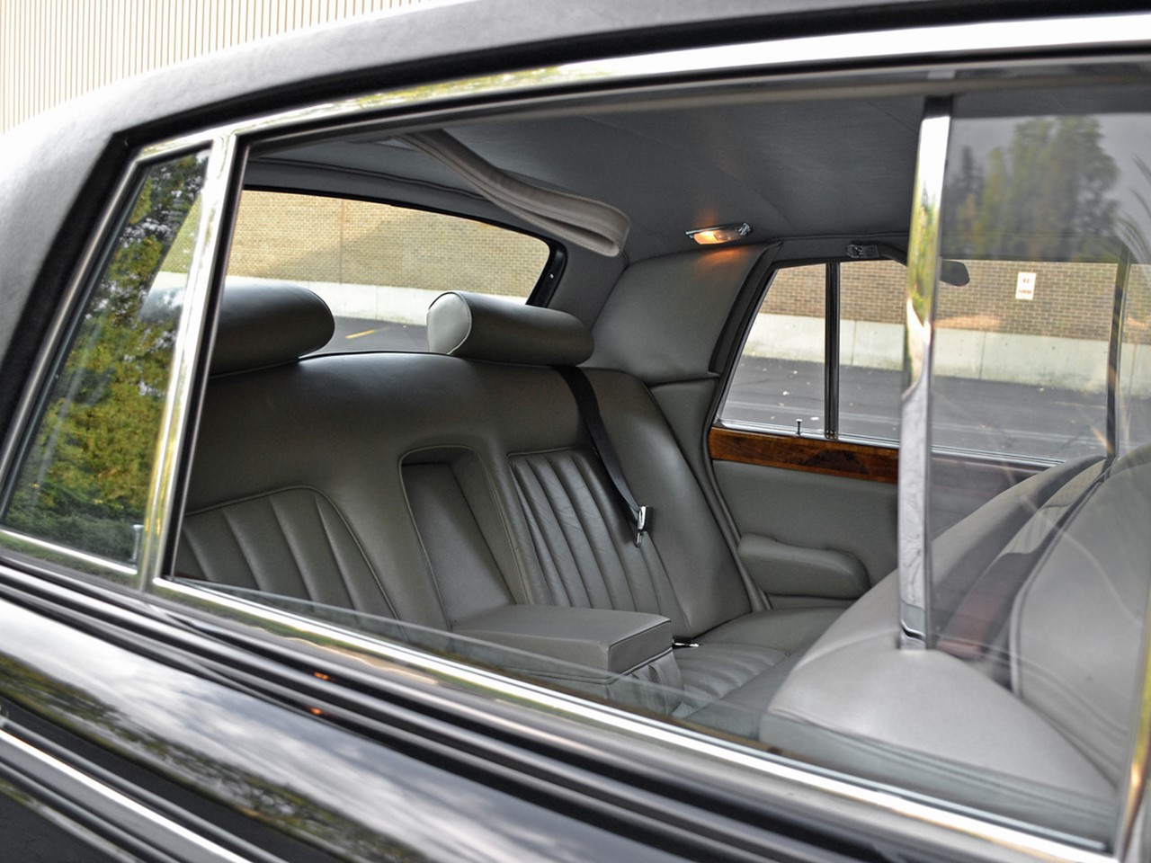 A formal interior of understated elegance cossets its passengers in first-class luxury. The rear compartment of the featured car is equipped with the rare privacy division. It can be raised and lowered electrically. The rear compartment is equipped with controls for the radio and air conditioning. The power windows and locks are also among the rear seat controls for convenience. Carpeted footrests and reading lamps complete the limousine experience. The Silver Shadow LWB saloon provides the kind of satisfaction only a carefully made and individually crafted work of art can give.