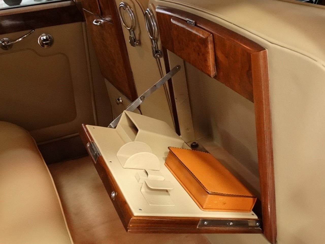 This cat in particular deserves to be set right, as the vendors implied, and which it hasn’t been. I saw the car before it ended up in the vendors hands, and all it needed was a “soft” restoration. It pains me to see a car overdone incorrectly – especially rare car like a Silver Cloud with Harold Radford features, and especially one supposed redone by a firm who advertised it as being so correct. In addition to my previous comments, which all apply, all four interior door handles are incorrectly positioned. This is inexcusable for a premier facility advertising a supposedly perfect car. The handbook in the glovebox clearly shows how those handles are positioned, and 9 times out of 10 they are incorrectly done. A glance in the handbook and five minutes is all it would have taken. Tudor Crystal still make the correct glassware to fit, in the correct Seymour pattern.