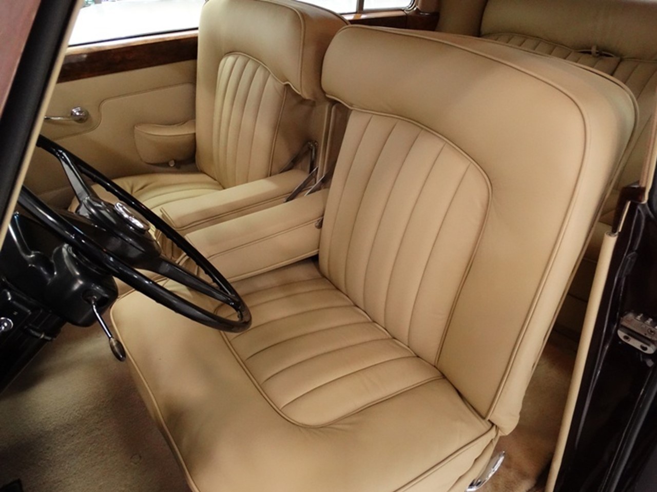The hand-tufted carpets are by Cumberland Stone and are 100% wool. It comes equipped with the car’s original crystal decanters and glassware. The mirror matched veneers are near perfect. Its rear seat resembles a living room sofa. This car was crafted in the old-fashioned manner. The interior was reworked using new custom-stitched leather by Connolly Brothers for a cost exceeding $5,000. The car is equipped with power windows and air conditioning. And the best part is, for all its silence and discretion, this car will never pass unremarked…