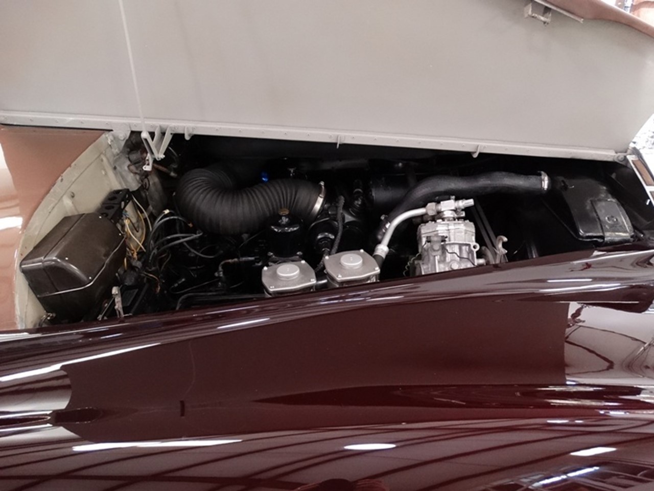 The Silver Cloud Series III is powered by the Rolls Royce 6.2 litre 16-valve V8 engine. It is equipped with two SU HD8 carburetors. The compression ratio was increased to 9:1 to accommodate higher octane levels of premium fuel. A nitride hardened crankshaft was used to correct the broken crankshaft issues in earlier Series II V8 engines due to improper lubrication to the main bearings. The engine is mated to GM’s Hydra-Matic 4-speed automatic transmission. This was the most powerful post-war Rolls Royce producing 224 hp @ 4,500 rpm with 450 Nm of peak torque @ 2,500 rpm.