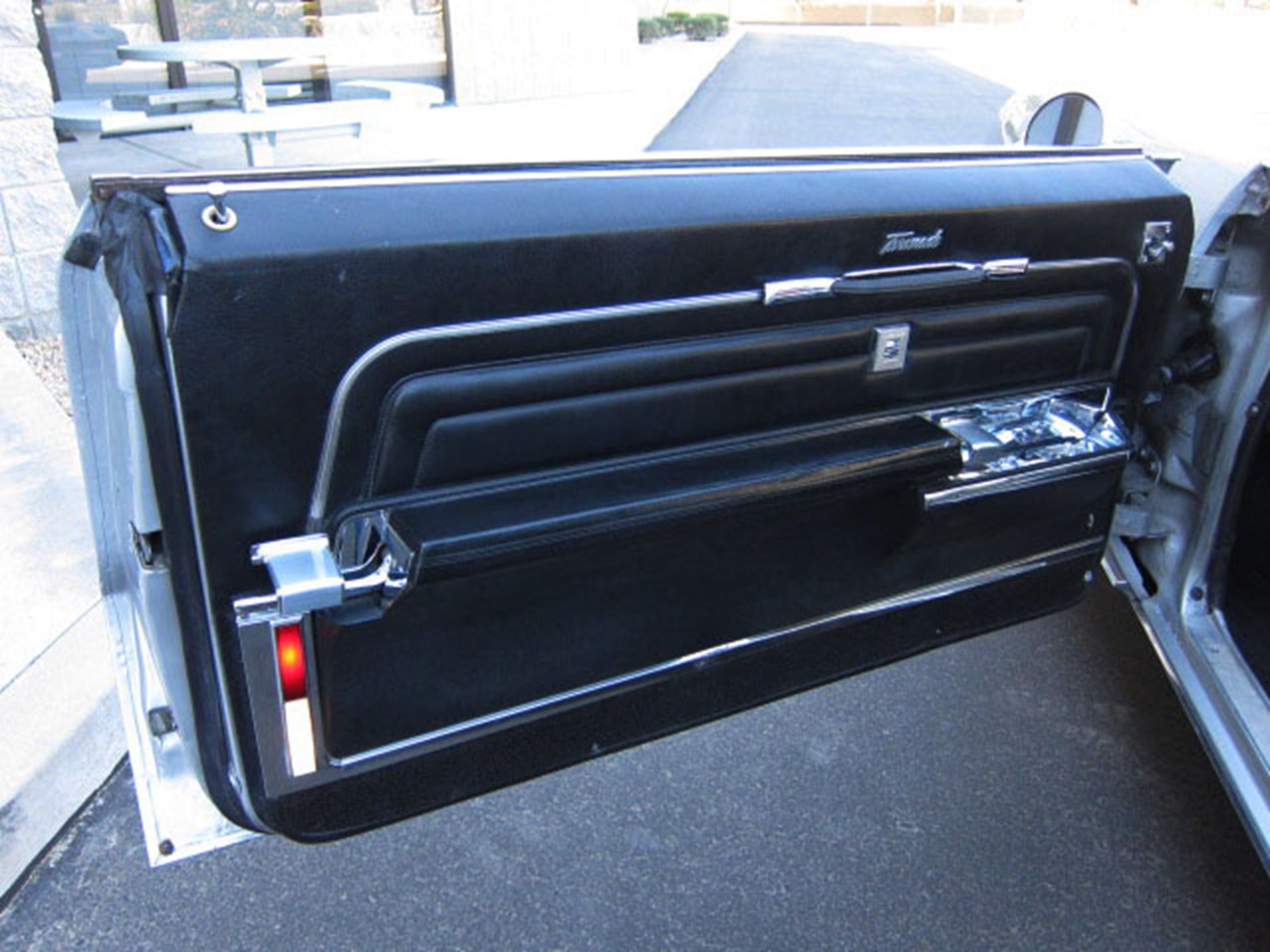 The 1966 Olds Toronado had the largest interior in its class. With the revolutionary new front-wheel drive, there is no transmission tunnel. It was astounding, without the traditional transmission hump there is more room than a Cadillac. With its completely flat floor it was like a rolling guest room. The wide doors provided ease upon both entry and exit. There is another set of door handles on the deluxe trim version so rear seat passengers could open the doors without reaching around the front seat passengers.