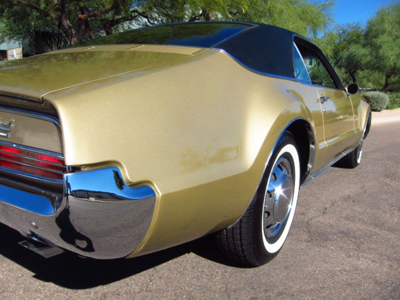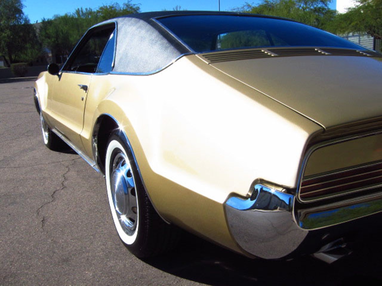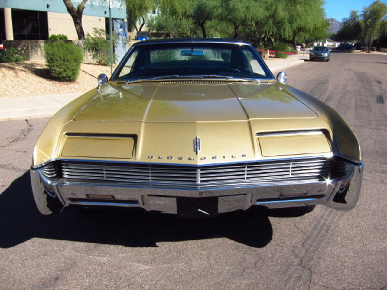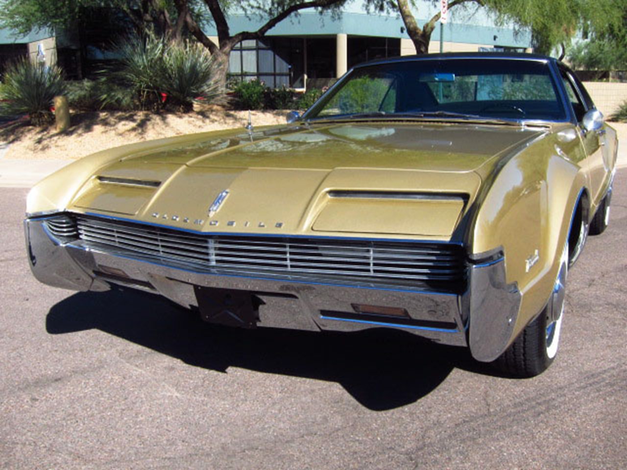 The first generation Oldsmobile Toronado was unlike any other car when it debuted in 1966. It stood out from the rest with its revolutionary new styling. Its superior handling characteristics, interior spaciousness, and the flow of power that pulled you along instead of pushing, was an exciting new way to travel Oldsmobile style. This trendsetting vehicle introduced many firsts such as the 4-bbl Quadrajet carburetor, Unitized Power Package, the THM-425 automatic transmission for front-wheel drive cars, flow through ventilation system, and lest we forget…the Toronado introduced the personal luxury car niche. Powered by the legendary Super Rocket V8 engine, the Olds Toronado is as sporty as it is luxurious. General Motors pioneered the contemporary front-wheel drive, the Toronado was the first American automobile to feature it since the Cord 810 of 1937. This is definitely not your father’s Oldsmobile…it was the preface to a contemporary new era of motoring superlatives. There was a special feel – in an Oldsmobile!