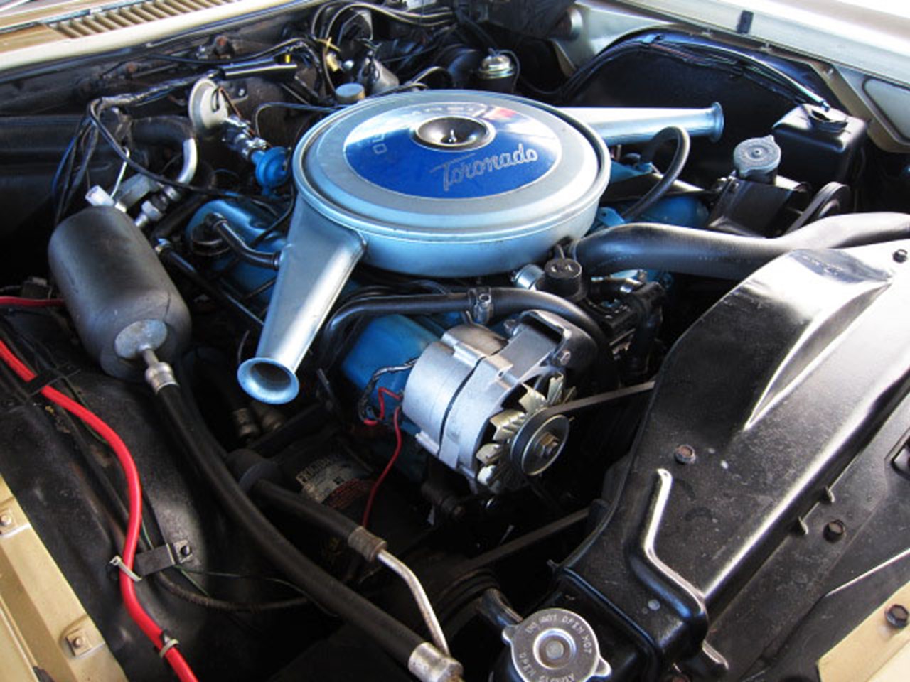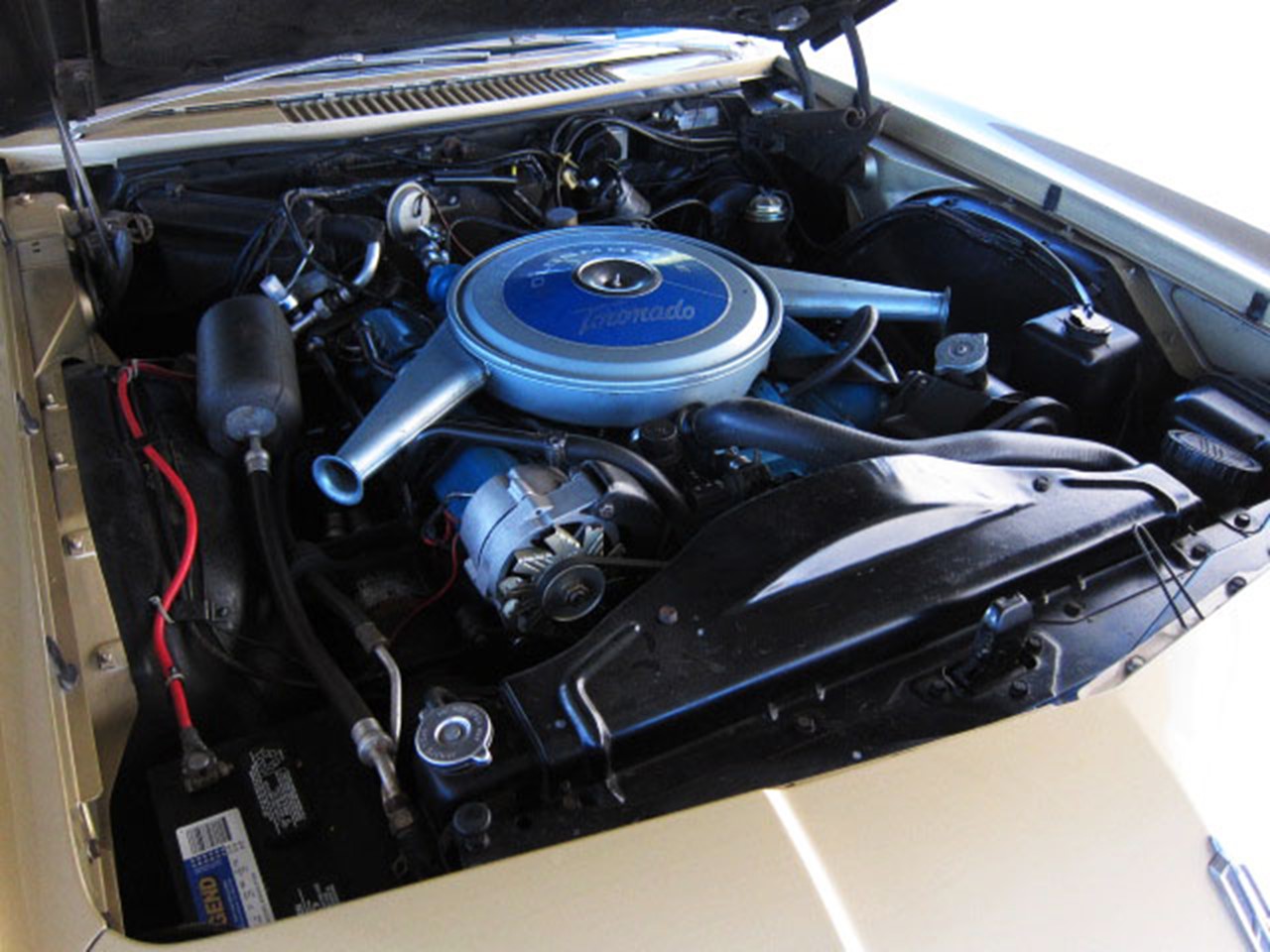Oldsmobile researched and tested over 1.5 million miles while developing the Toronado. They performed rigorous gauntlets of testing to verify the strength and reliability of all its components. During this seven-year development, GM introduced many innovations because of the Toronado. The Turbo Hydra-Matic THM-425 front-wheel drive automatic 3-speed transmission, the Rochester down-draft 4-bbl carburetor, spherical-shaped exhaust flange gaskets that allowed freedom of movement within the exhaust system and prevented leakage, flow through ventilation which eliminated the vent windows that also reduced wind noise, and a Toronado-based design drive train for GMC motor homes are just a few of the myriad innovations introduced by the Oldsmobile Toronado. Firestone designed the 1966 Toronado’s 8.85 x 15 tires. They were heavy-duty with stiffer sidewalls and a stylishly thin white stripe. The rest of the industry followed suit with the thin whitewall tires.