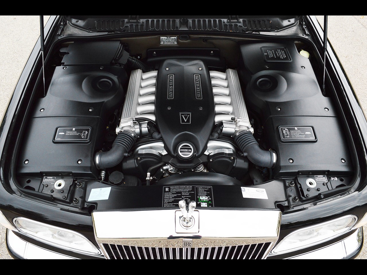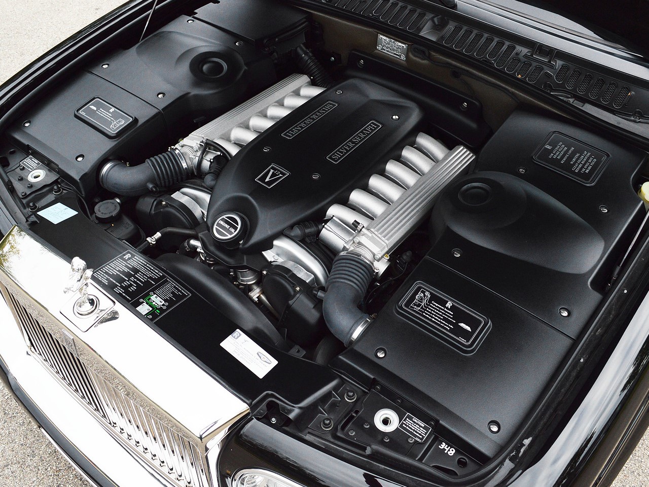 The Silver Seraph is the first V12 powered Rolls Royce since the classic Phantom III. The engine is made by BMW and is an alloy, fuel injected 5.4 litre with overhead cam and 24-valves. It produces 322 hp @ 5,000 rpm with 490 Nm of peak torque @ 3,900 rpm.