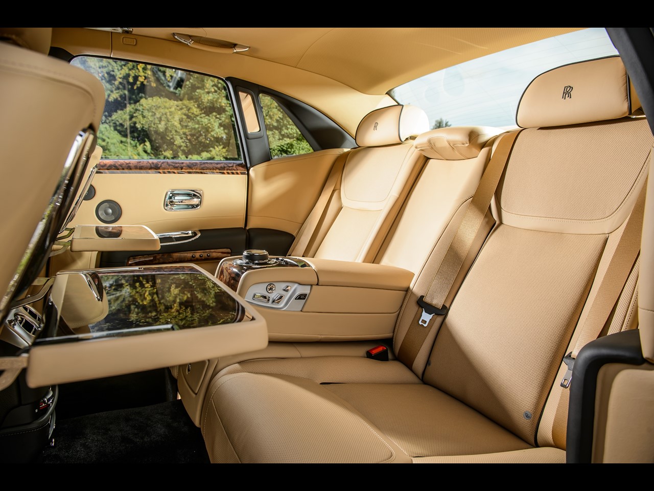 Ghost Series II is available in standard and extended wheelbase configurations. The standard Ghost measures 212.6” in length, has a 76.7” width, and rides upon a 129.7” wheelbase. The Extended Wheelbase saloon measures 219.3” in length, has the same 76.7” width, but rides upon a long 136.4” wheelbase. The EWB saloon affords more rear passenger room which provides extra space for the addition of various multimedia equipment to be installed for the owner who must work while traveling.