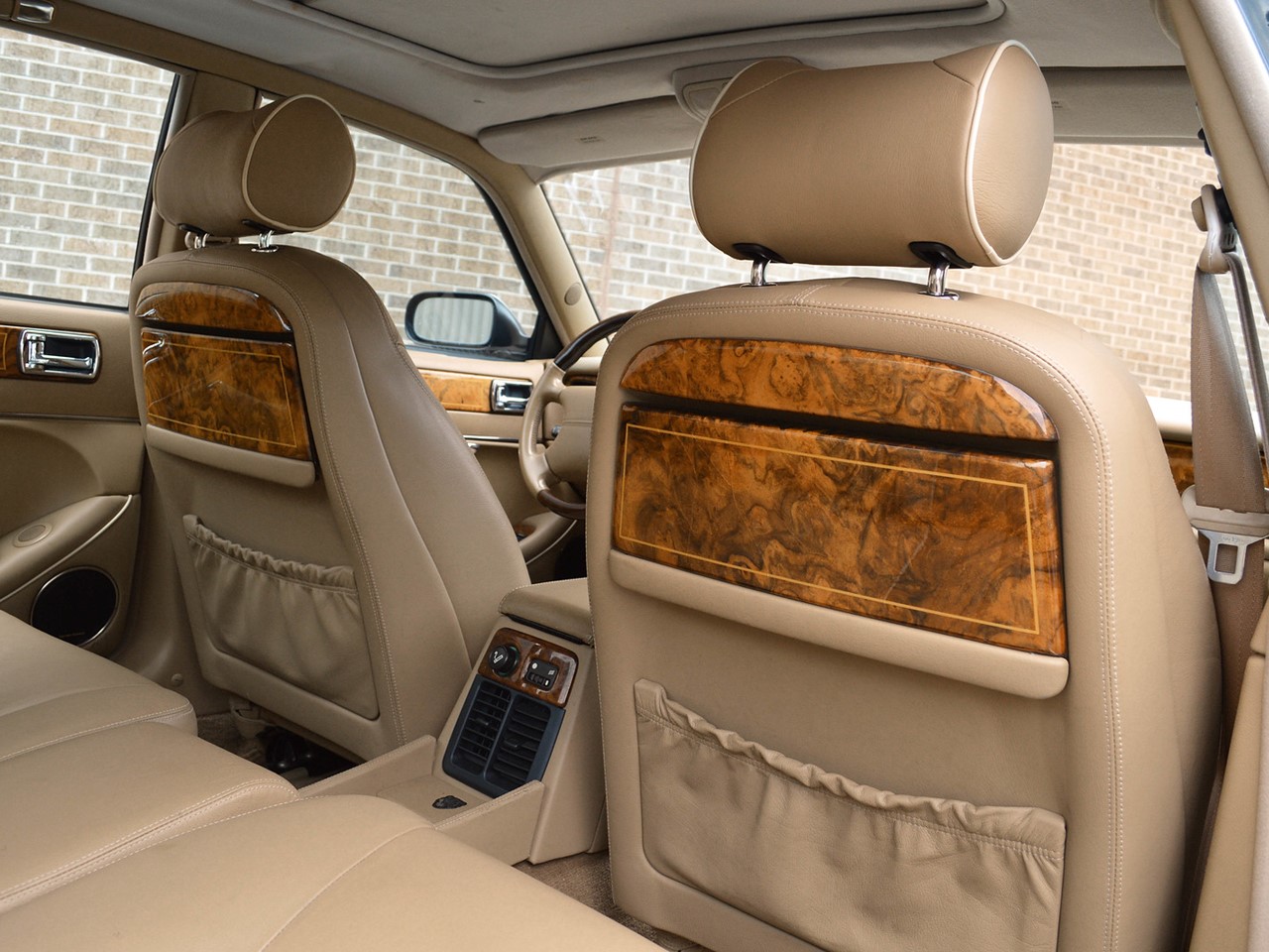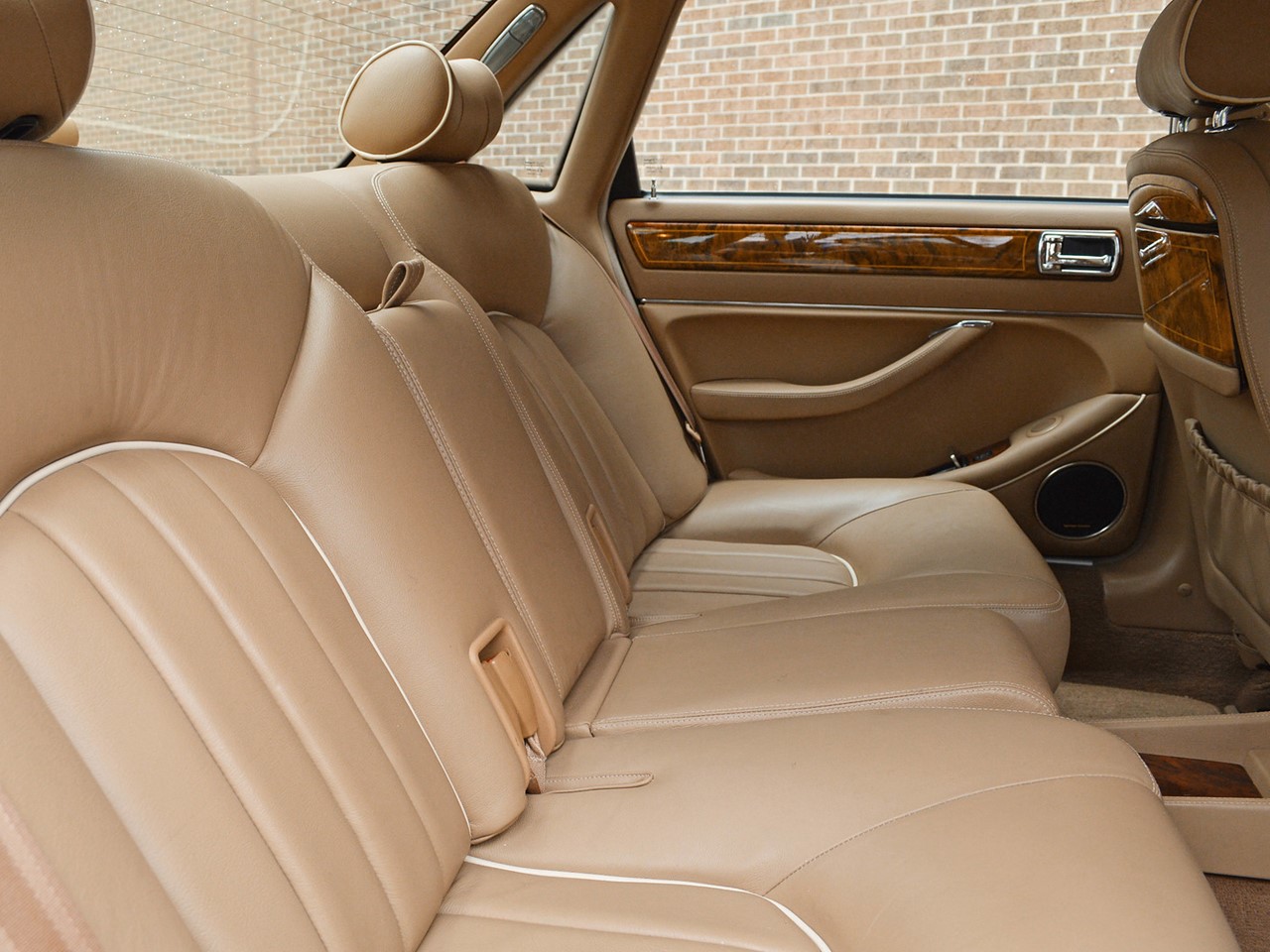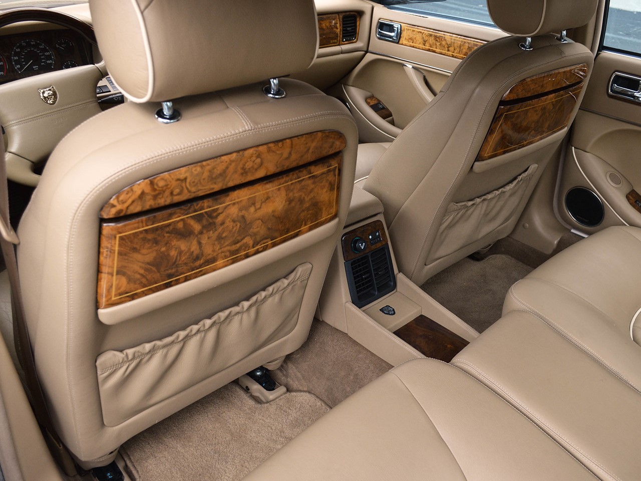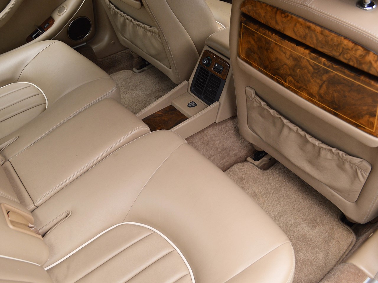 The interior is tastefully hand-crafted with supple, natural grain Connolly leather. Rich, warm, walnut wood trim surrounds the cabin and is augmented by matching walnut picnic tables for the rear seat passengers. There are lambswool rugs in the foot wells for added luxury. A new overhead roof console provides a sunglass compartment. It also houses controls for the sunroof and integrated 4-channel garage door/entry gate opener. The Vanden Plas escalates the XJ6 to superlative heights in comfort and convenience. These are some of the most lavishly equipped luxury sedans in the world.