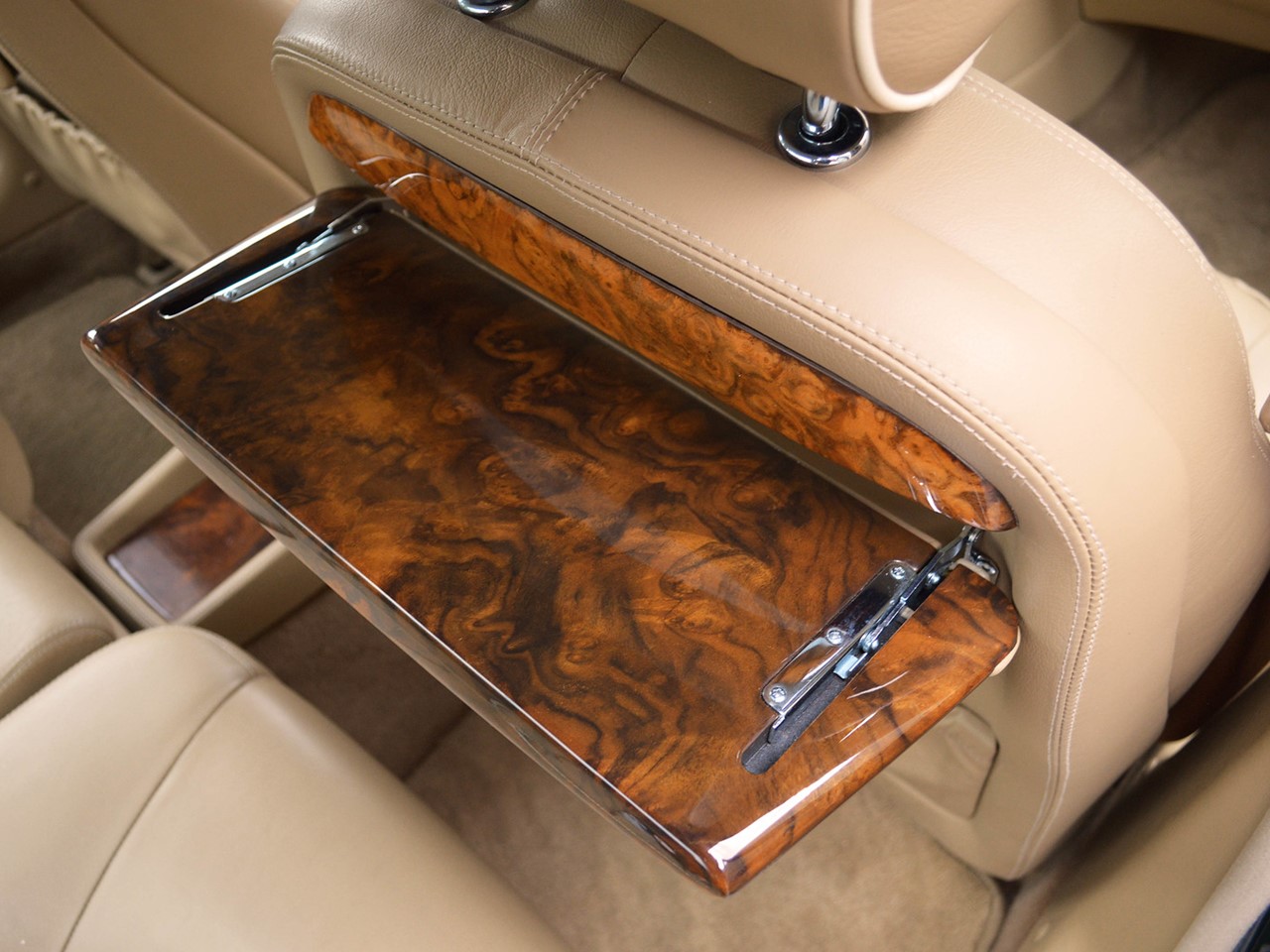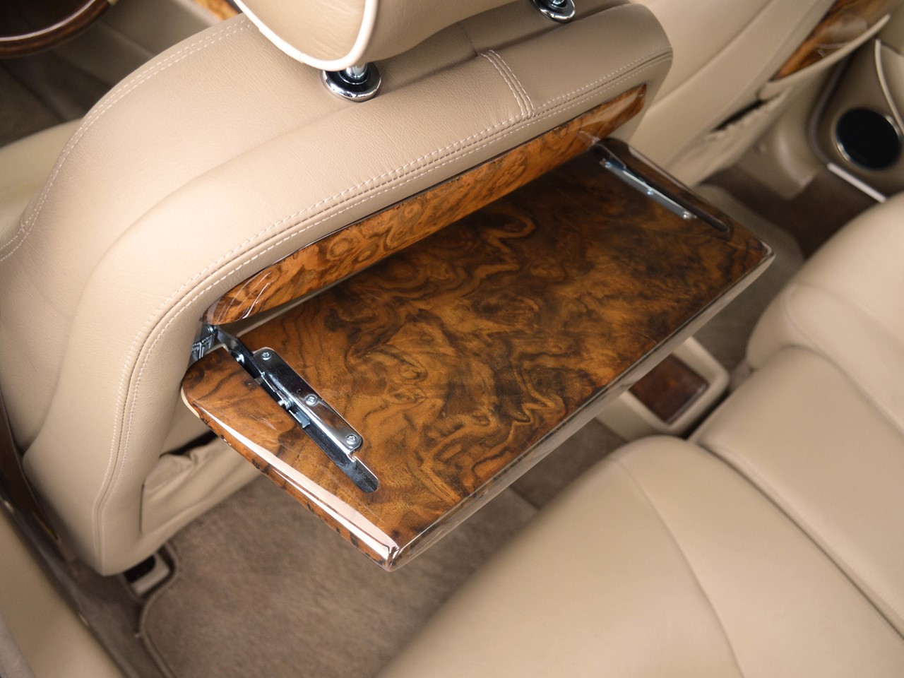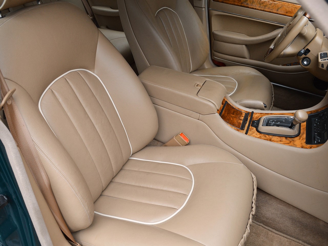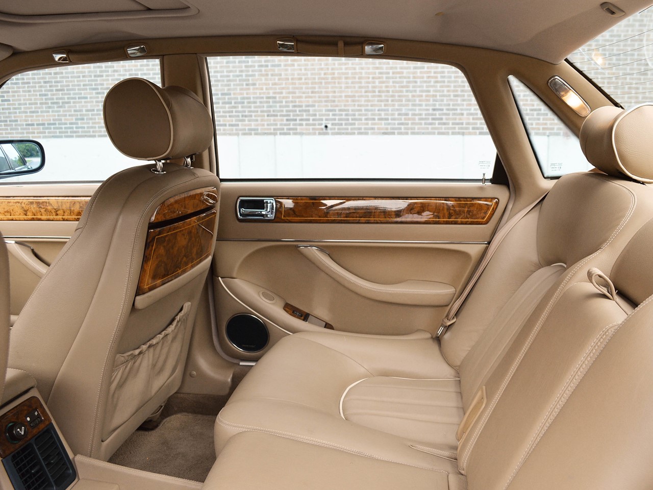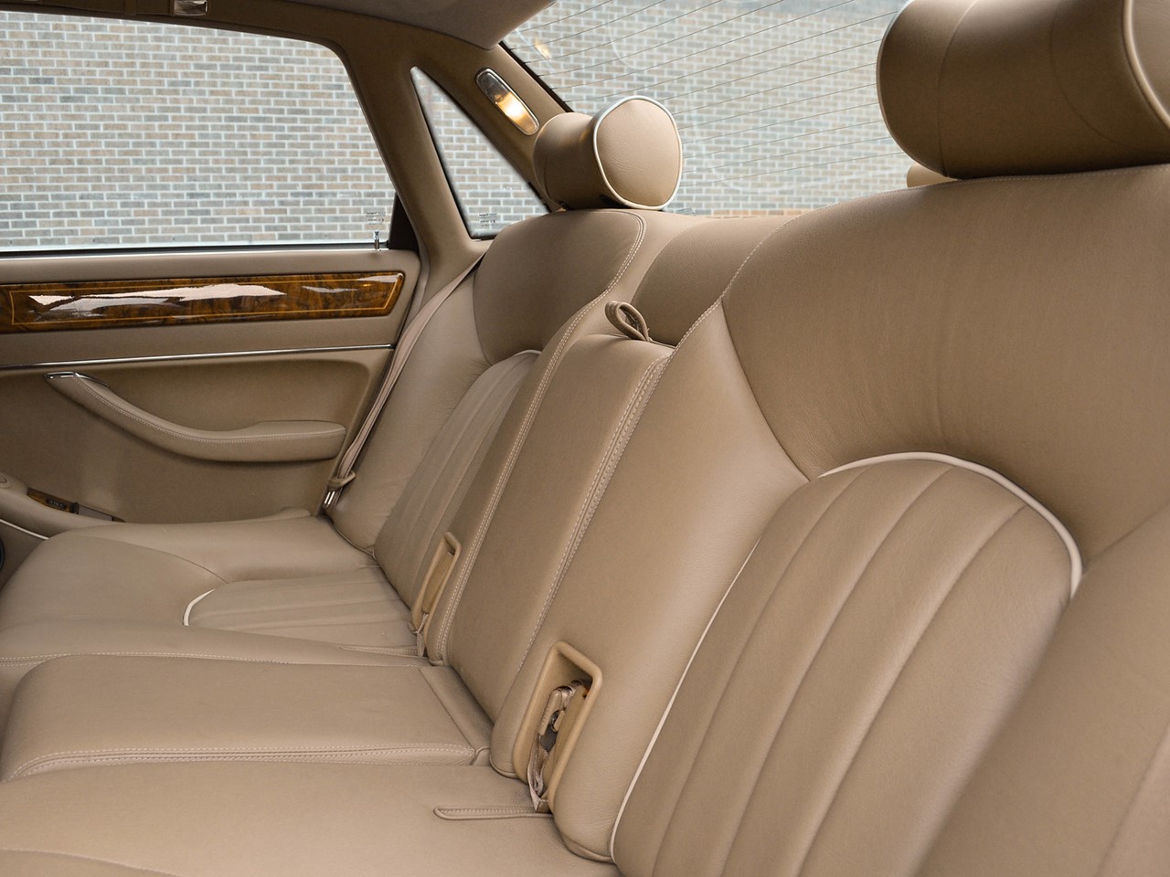 The interior is tastefully hand-crafted with supple, natural grain Connolly leather. Rich, warm, walnut wood trim surrounds the cabin and is augmented by matching walnut picnic tables for the rear seat passengers. There are lambswool rugs in the foot wells for added luxury. A new overhead roof console provides a sunglass compartment. It also houses controls for the sunroof and integrated 4-channel garage door/entry gate opener. The Vanden Plas escalates the XJ6 to superlative heights in comfort and convenience. These are some of the most lavishly equipped luxury sedans in the world.