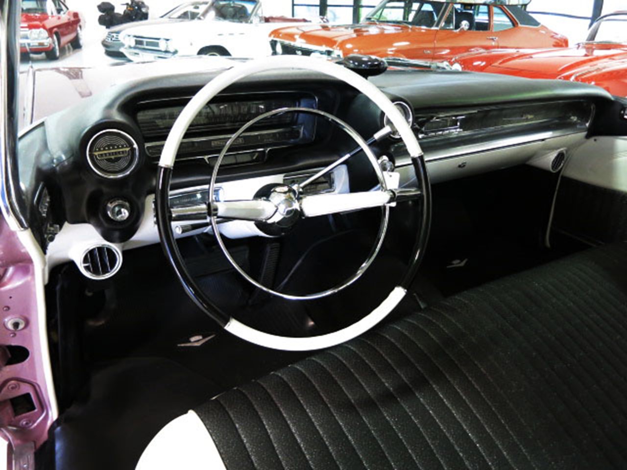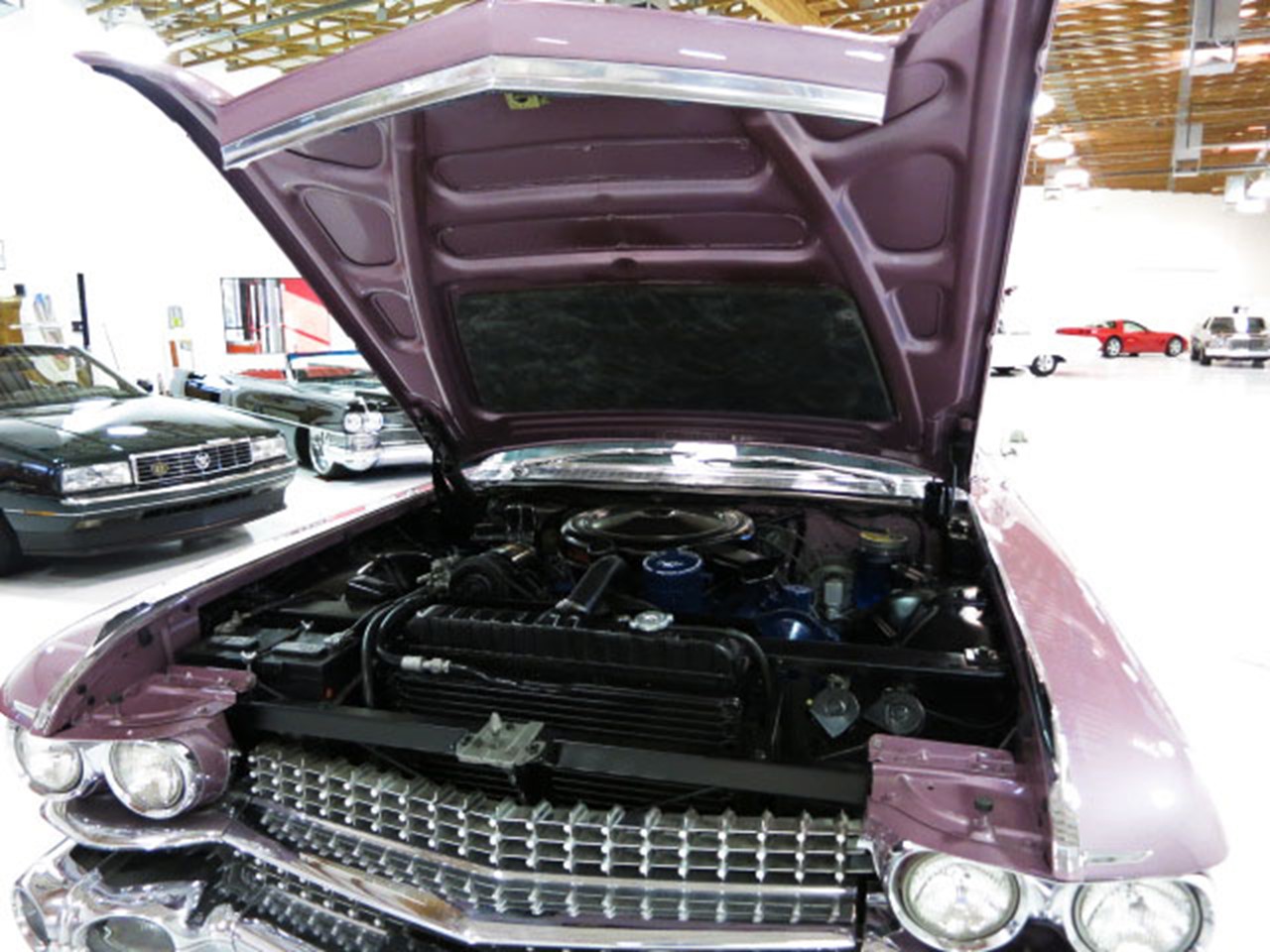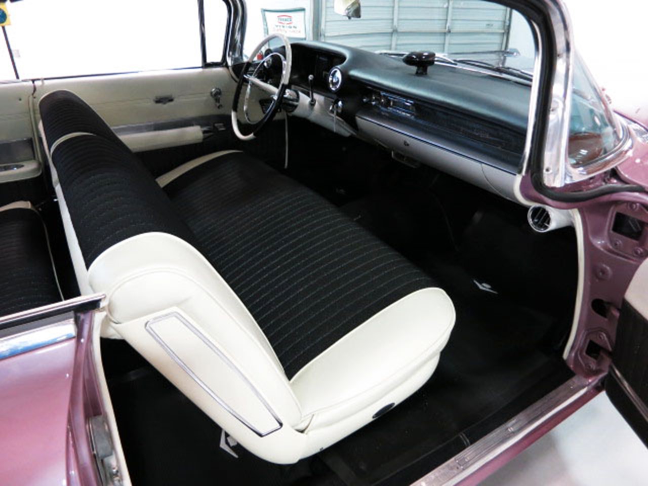 The new Cadillac chassis for the 1959 model year featured improved braking, steering, driving ease, and riding comfort. They were built on Cadillac’s rugged tubular “X” frame. It was not only more rigid than previous chassis versions, it permitted lower body mounts for improved overall appearance and greatly improved stability. Body on frame construction was the trend for the day. The 1959 Series Sixty-Two coupe was an extremely large front-engine rear-wheel drive luxury coupe. It has the luxury length of 225”, rides upon a long 130” wheelbase, and is 80” in width.