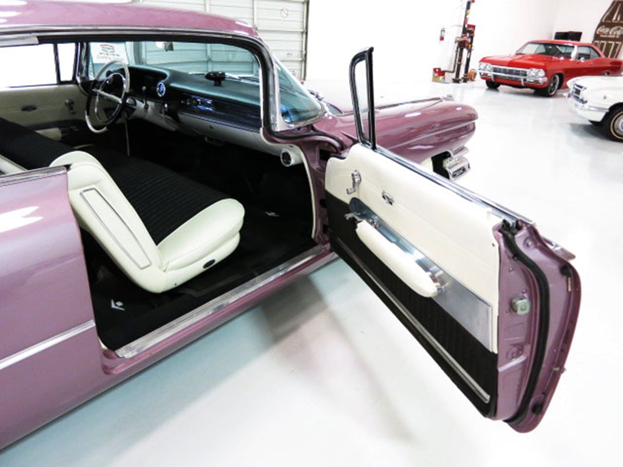 Hi do you have any idea what color the metallic pink cadallic is in this article? I cant seem to find it in 1959 paint chips. Is it factory? Thanks Dennis