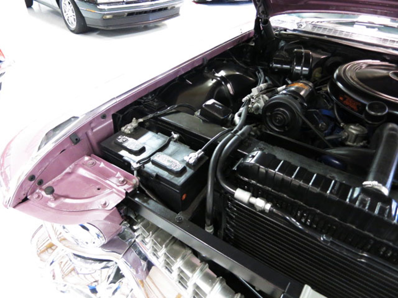 The crankshaft runs in five main bearings. It came standard with a Carter 4-bbl downdraft carburetor with equalized manifold. An optional Rochester “Triple Deuce” (three 2-bbls) kicked it from 325 hp to 345 hp output. It was equipped with a mechanical fuel pump, dry-pack air cleaner, intake silencer, and automatic choke. Cadillac hand-built these magnificent powerplants to superlative standards.