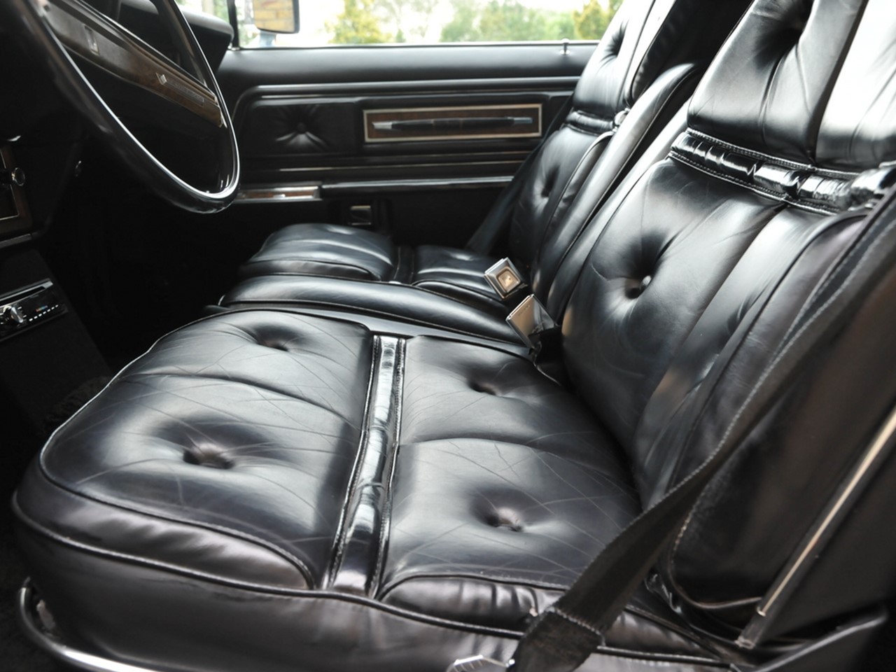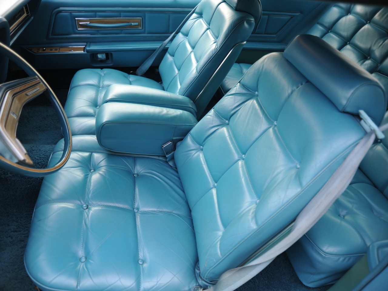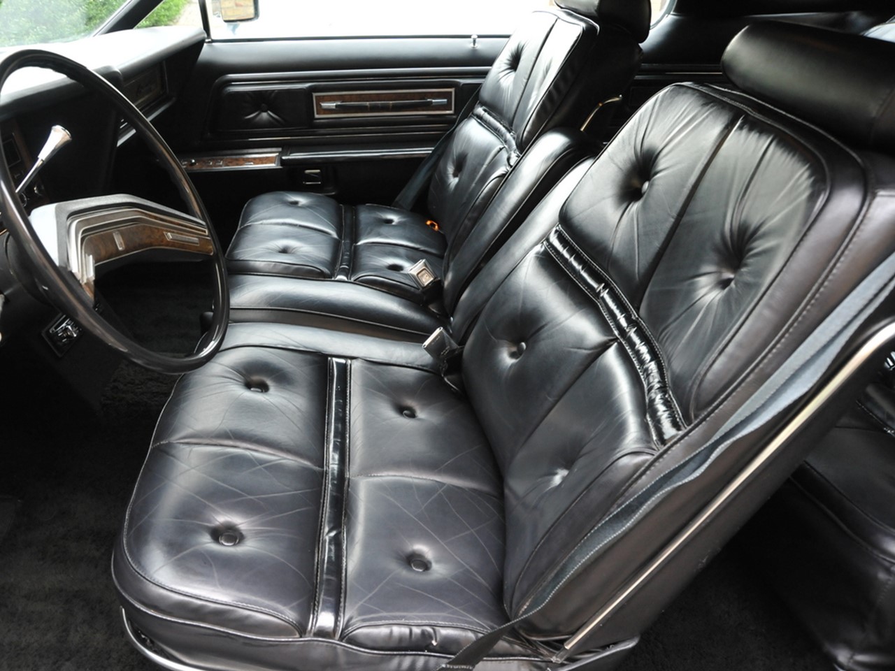 Popular optional features and accessories for the 1976 Continental MK IV includes: Power Glass Moonroof, Custom Landau Vinyl Roof, power vent windows, rear window defroster, “Quick Defrost” rear window, leather trim, Versailles Luxury Group Option which includes floating pillow-style seating in elegant velour, illuminated visor vanity mirrors, Moondust Metallic paint finishes, Diamond Fire Metallic paint finishes, tilt steering wheel, premium bodyside moldings, forged aluminum wheels, Security Lock Group, custom paint stripes, and wide-band whitewall tires.