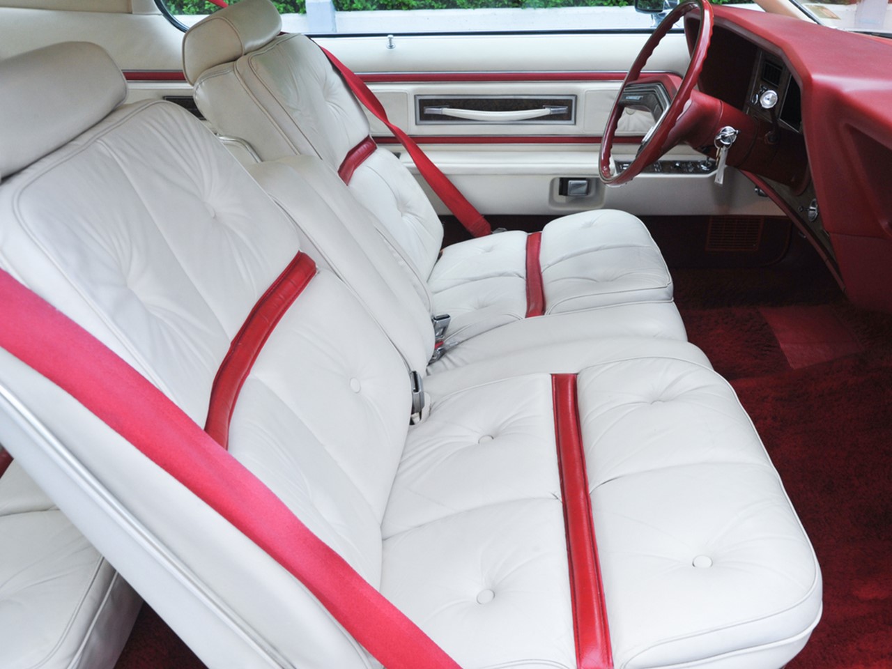 The 1976 MK IV was available in Blue Diamond, Black Diamond, Saddle/White, Lipstick/White, Gold/Cream, Red/Rose, Jade/White, and Dark Jade/Light Jade Luxury Groups. Another popular Luxury Group was the Versailles Option. It was available in four interior colors with special “floating-pillow” style cushioned seating. This exclusive velour trimmed not only the upholstery but the headlining, and door panels as well. Each Luxury Group and the Designer Editions had a color-keyed luggage compartment with the same carpet that was used for the interior. Each Luxury Group was the epitome of Lincoln luxury and elegance.
