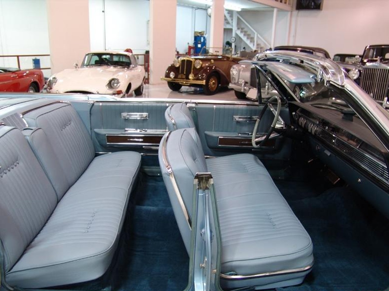 It is not only more space but new luxury as well. Glove-soft hand-tailored leather upholstery is standard for the Continental convertible. New door trim panels compliments the new look. The Lincoln Continental is the first American automobile to mount the inside rear view mirror directly to the windshield. New French seams detail the leather upholstery for added elegance. Come experience The Continental Life –