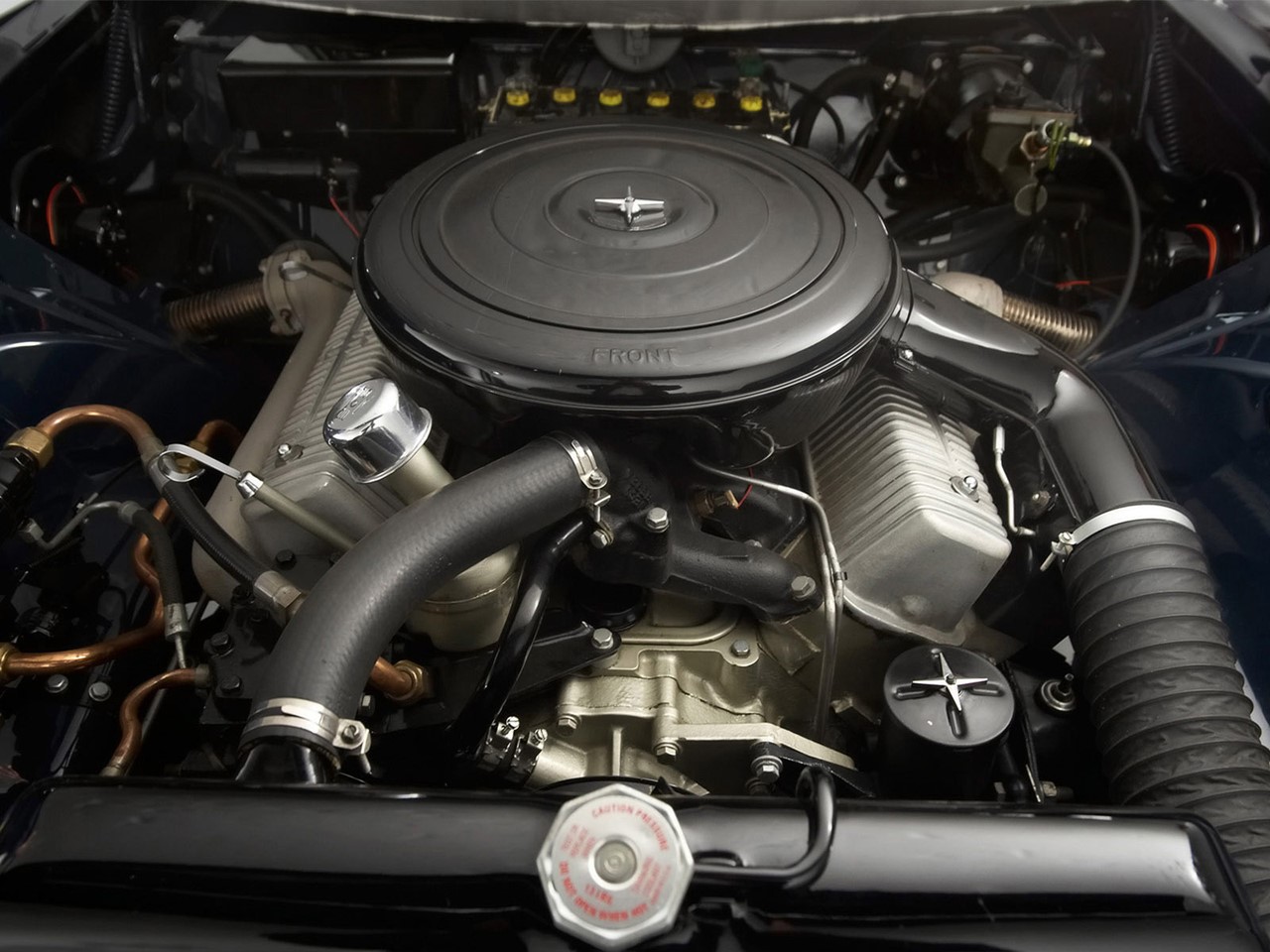 This naturally aspirated engine is equipped with a Carter C8VF-9510E 4-bbl carburetor. The engine is mated to the new smoother Select-Shift Turbo-Drive automatic, torque converter has 3-speed planetary gear set and 6-position selector dial. Longitudinal acceleration is rated as 0-60 mph in 9 seconds, 0-100 mph in 27.4 seconds with a top speed of 124 mph ungoverned. It does the ¼ mile @ 83 mph in 17.2 seconds.