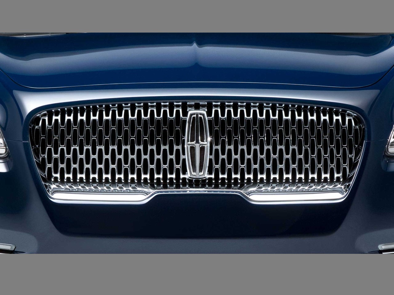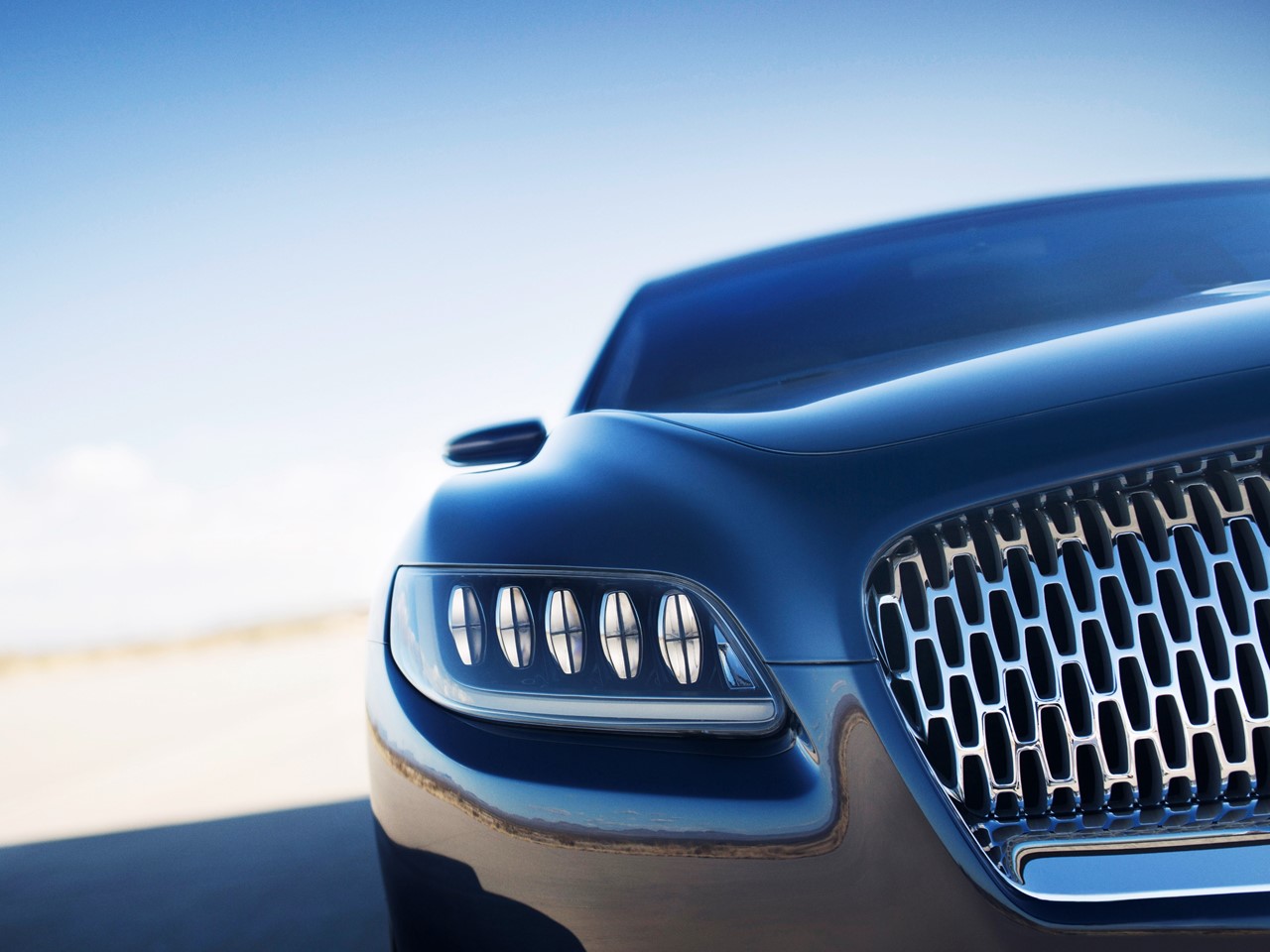 This is the new look of Lincoln luxury. The striking front end ensemble boasts a chrome mesh grille flanked by LED headlamps. Here is elegance and ingenuity American-style. The LED matrix headlamps include laser assisted high beams. After dark, the Lincoln Continental Concept presents a dramatic light show with an illuminated Continental star emblem in the center of the grille. This theme is repeated with five smaller illuminated Continental star motifs in the headlamps. The LED daytime running lamps are an illuminated line under the headlamps with horizontally illuminated light bars set into the ductwork on both sides of the lower bumper opposite the large air intake in the center.