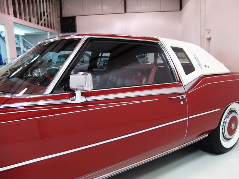 An Eldorado always predicted styling features that would eventually find their way on future Cadillac models. The Eldorado Seville has a luxurious Vicodec roof covering as its signature styling feature to highlight its pillarless hardtop design. This was the beginning of the vinyl roof treatments that became so popular in the 1970s.