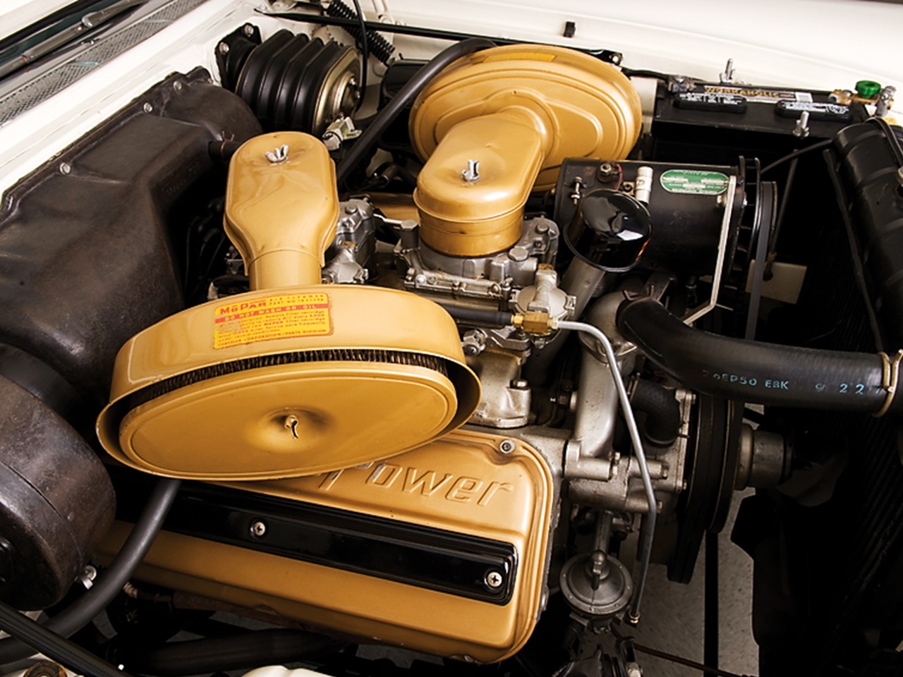 This was the largest displacement for this Hemi, next came the venerable 426 CID version, my favorite is the 392. The engine is mated to Chrysler’s new TorqueFlite 3-speed automatic transmission. The TorqueFlite transmission uses a high performance torque converter with planetary gears. The fire-breathing FirePower V8 combined with the fully automatic TorqueFlite transmission was the finest and most efficient power train in the industry at the time.