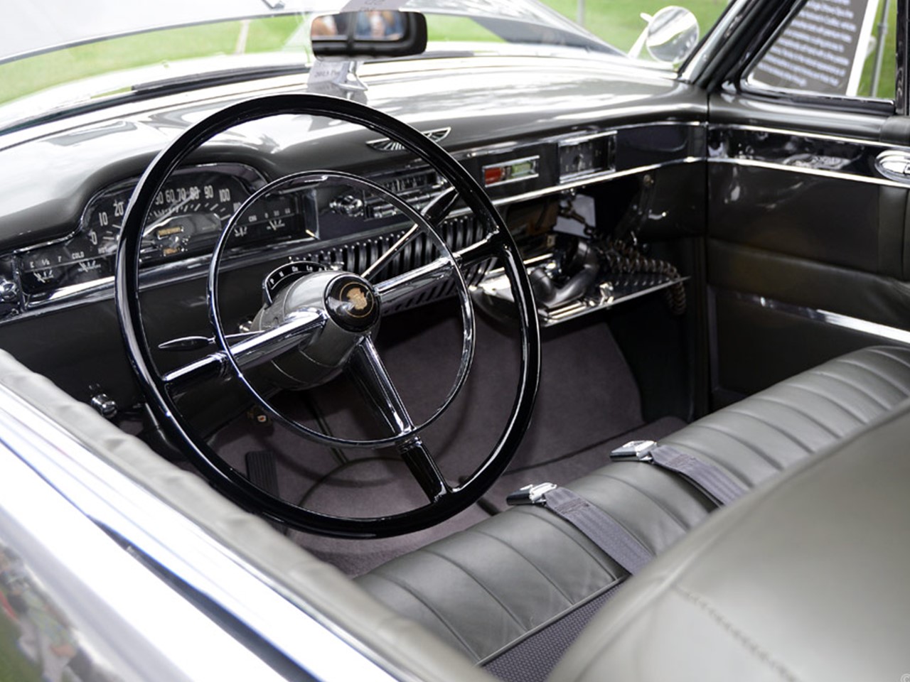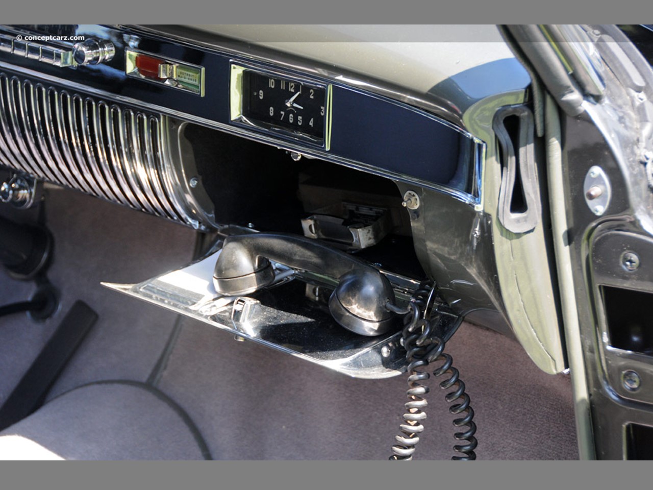 Some enthusiasts refer to it as the “Fleetwood Coupe deVille.” This one-off prototype was fitted with a dashing pillarless two-door body shell with a one-piece windscreen and intricate back glass. The two-toned black and grey leather interior was fitted with exclusive trim and features. There was a secretarial set-up in the rear armrest, a telephone in the glove box, a vanity case, and power windows. The Series 62 Coupe deVille was introduced in its production form late in the 1949 model year.