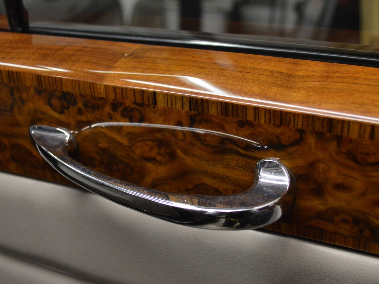 Of course, fine wood veneers are custom-crafted to each Silver Cloud. The wood for each set comes from the same tree that is usually over 100 years old which adds to the wood’s character. The cabinet-maker hand cuts eight slivers of veneer. He bundles them together and creates a unique pattern. The wood panels are mirror-matched to reflect the opposite side. This same technique is used to make fine home furniture.