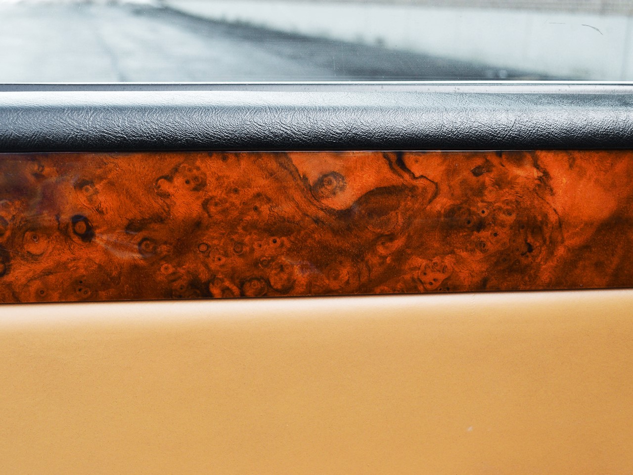 Contrasting color combinations are popular. Take note of the carpets edged with the same color combo as the upholstery. This Camargue has an intricately burled pattern for its veneers.