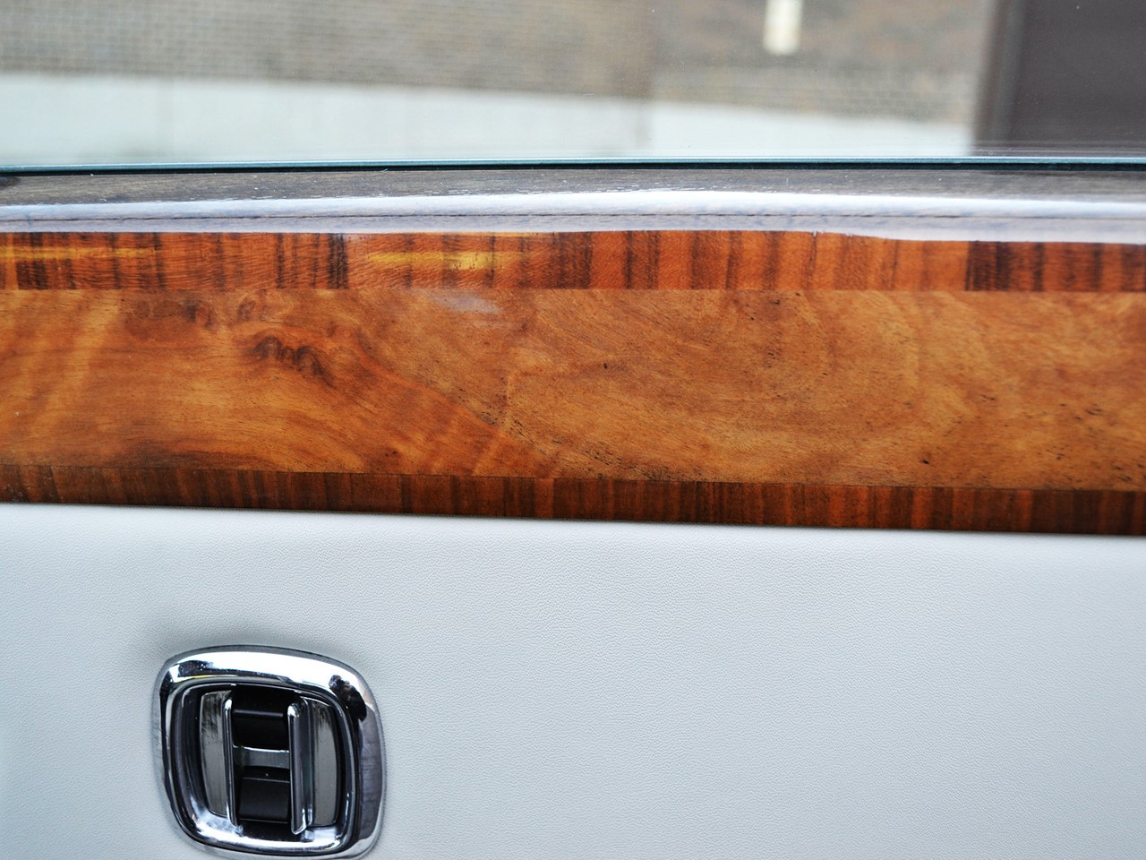 Note the elegant mirror-matched veneers for the door garnish rails. This pattern is the exclusive Rolls Royce cross-banded design where the artisan uses two patterns creating an unusual one-of-a-kind design which no two Rolls Royce motorcars will share…
