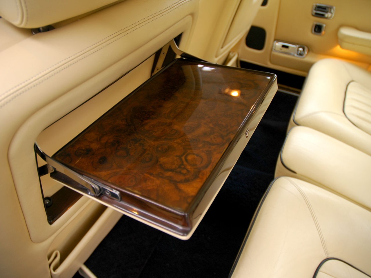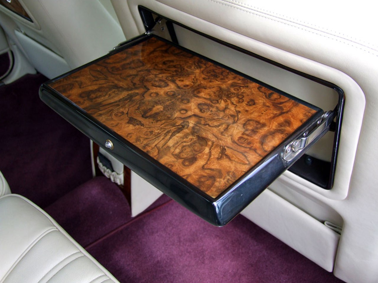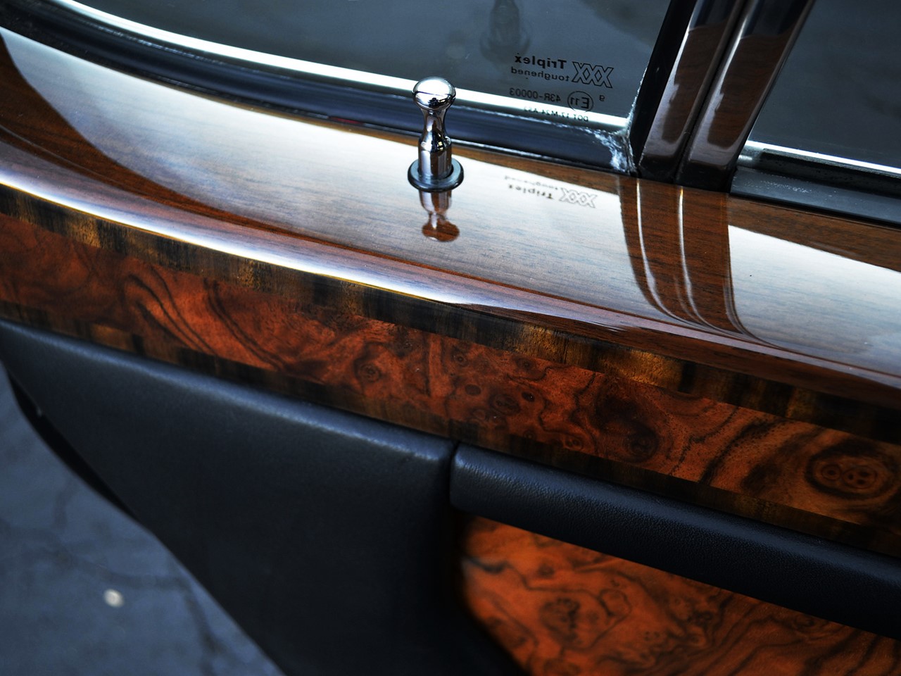 Each piece is mirror-matched to reflect the opposite side as in fine European furniture. The veneers are hand-lacquered and hand-polished to an amber luster that shines like glass and is that strong; a careless guest could stub out a cigarette on it without damage. The quality, fit and finish demonstrates the dedication to quality. This is what sets the Crewe built Rolls-Royce apart from other fine luxury motorcars.