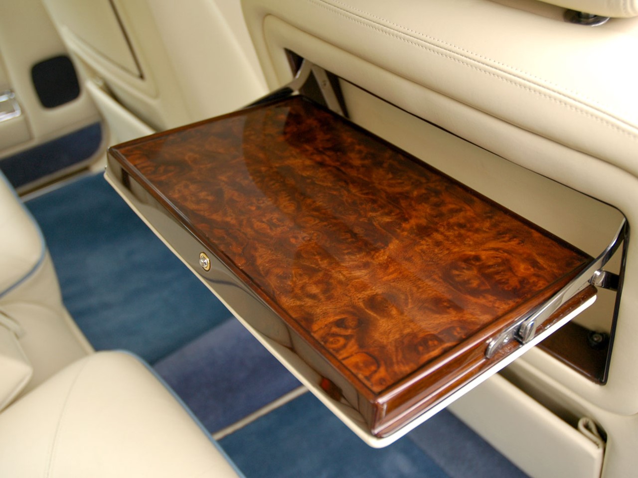 Signature features apart from the opulent tu-tone exterior finish includes a very special Chesterfield sew-style with hand button tufting for the upholstery, headlining, door armrests and individual leather throw pillows. Heated seats, power adjustable rear seats, and custom handcrafted Madrona wood with cherry cross-banded veneers have patterns unique to each motorcar.