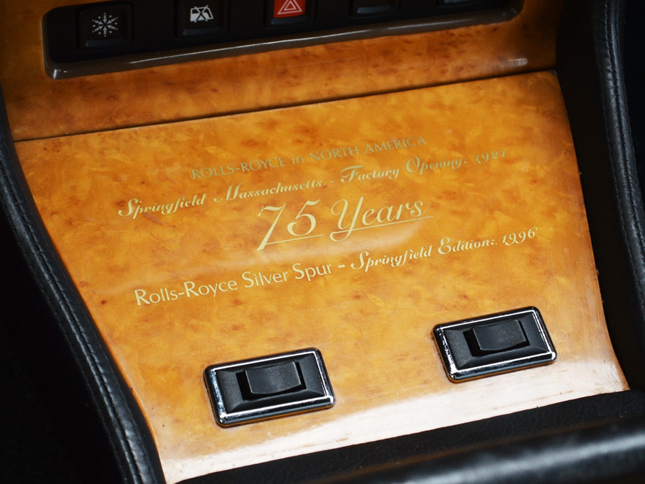 The Silver Spur was also available as the Springfield Edition for the 1996 model year. It was built exclusively for the US markets as a 75th Anniversary tribute to the Springfield, Massachusetts factory when the first Rolls-Royce was hand-built there in 1921; the plant was in operation until 1931.