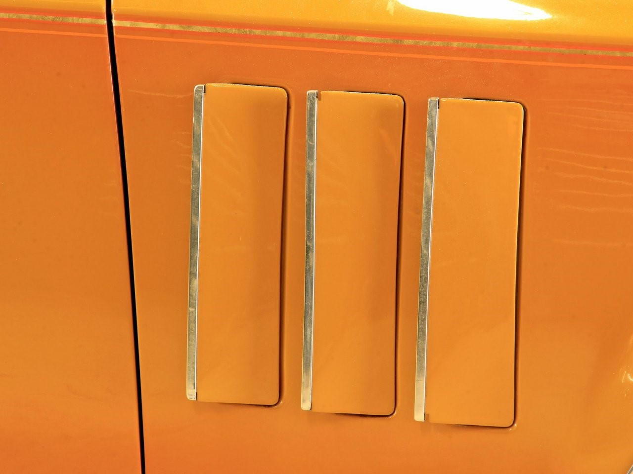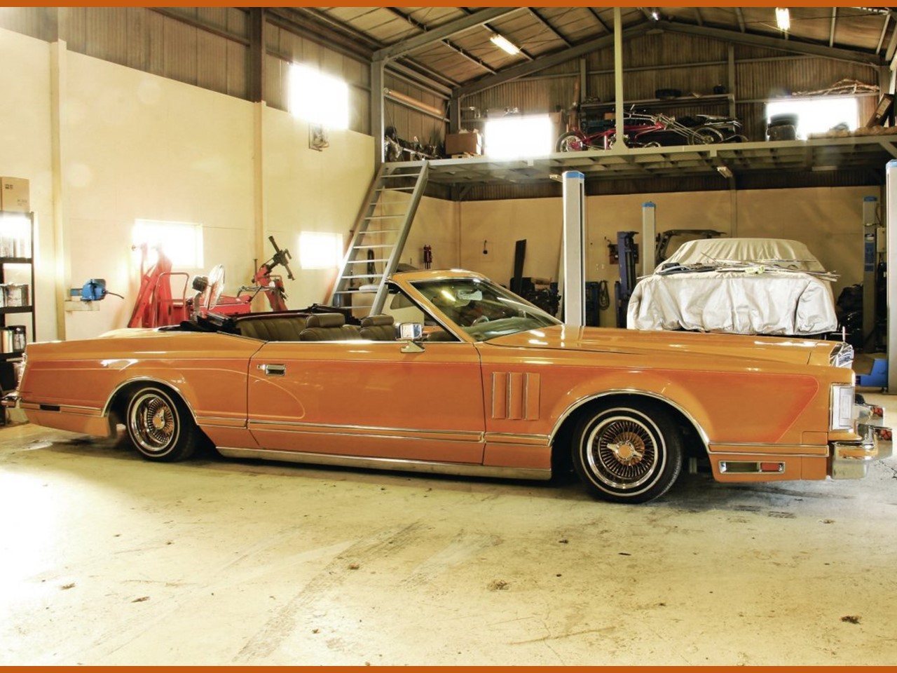The custom Continental MK II is finished in flawless “Corvette Atomic Orange” base coats. It’s the clear coats that adds depth to all of the contours and sweeping lines which forces the eyes to roam the entire car in a single appraisal. The startling contrast between the shocking orange finish and the classic wide whitewall tires is highlighted by the outrageous 100-spoke chrome aluminum wheels. The custom Continental MK II is a successful confluence of old world charm and contemporary panache –