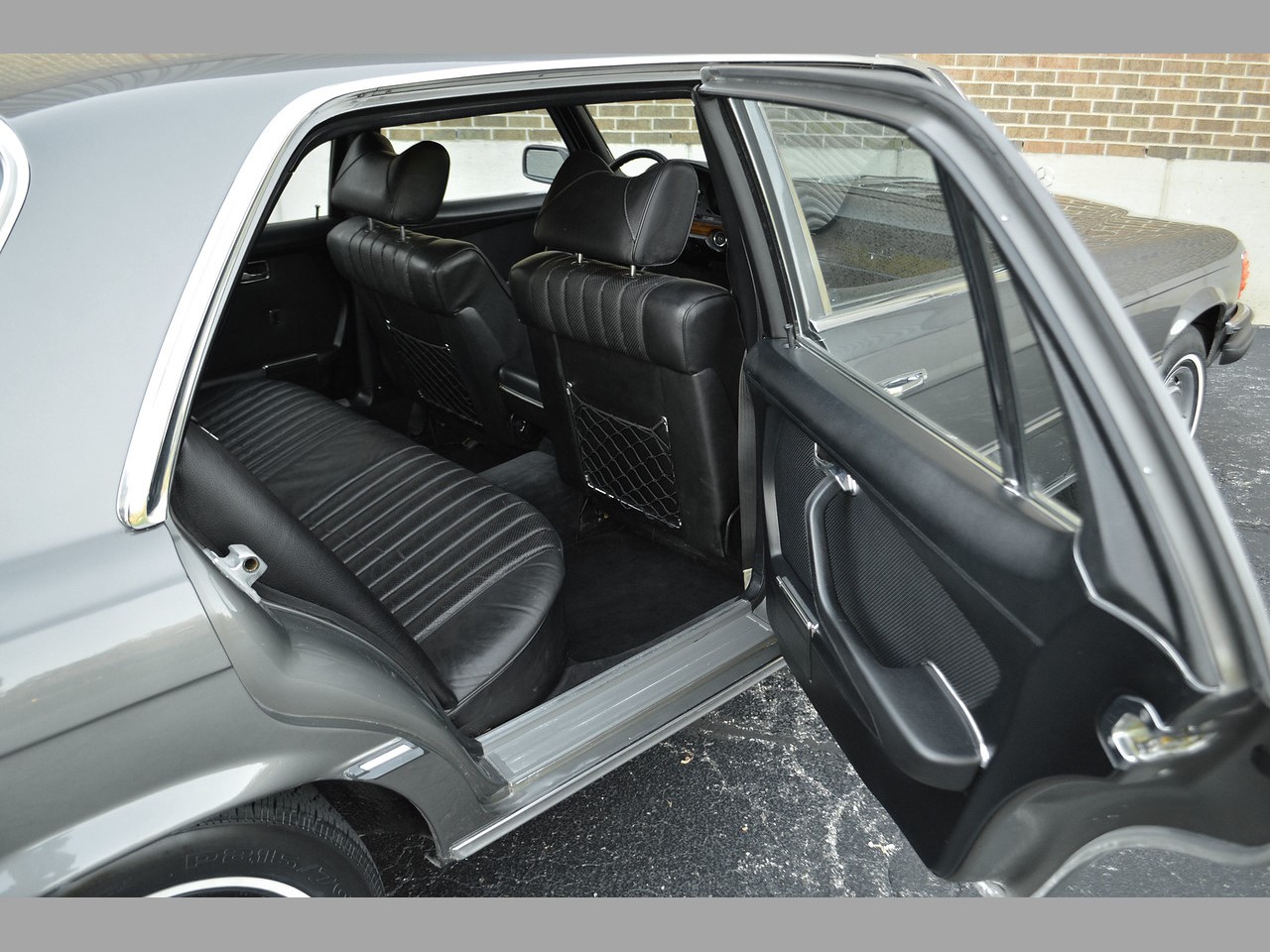 The long wheelbase in the 450 SEL adds extra legroom for rear seat passengers. Take note of the ergonomic design of the seats and head restraints. There are no dangerous protuberances in the cabin, everything is designed with occupant safety in mind. In the event of a serious collision, the entire cabin is designed to wrap around the occupants to shield them from injury without air cushion restraint systems…Mercedes-Benz leads the industry with safety innovation.