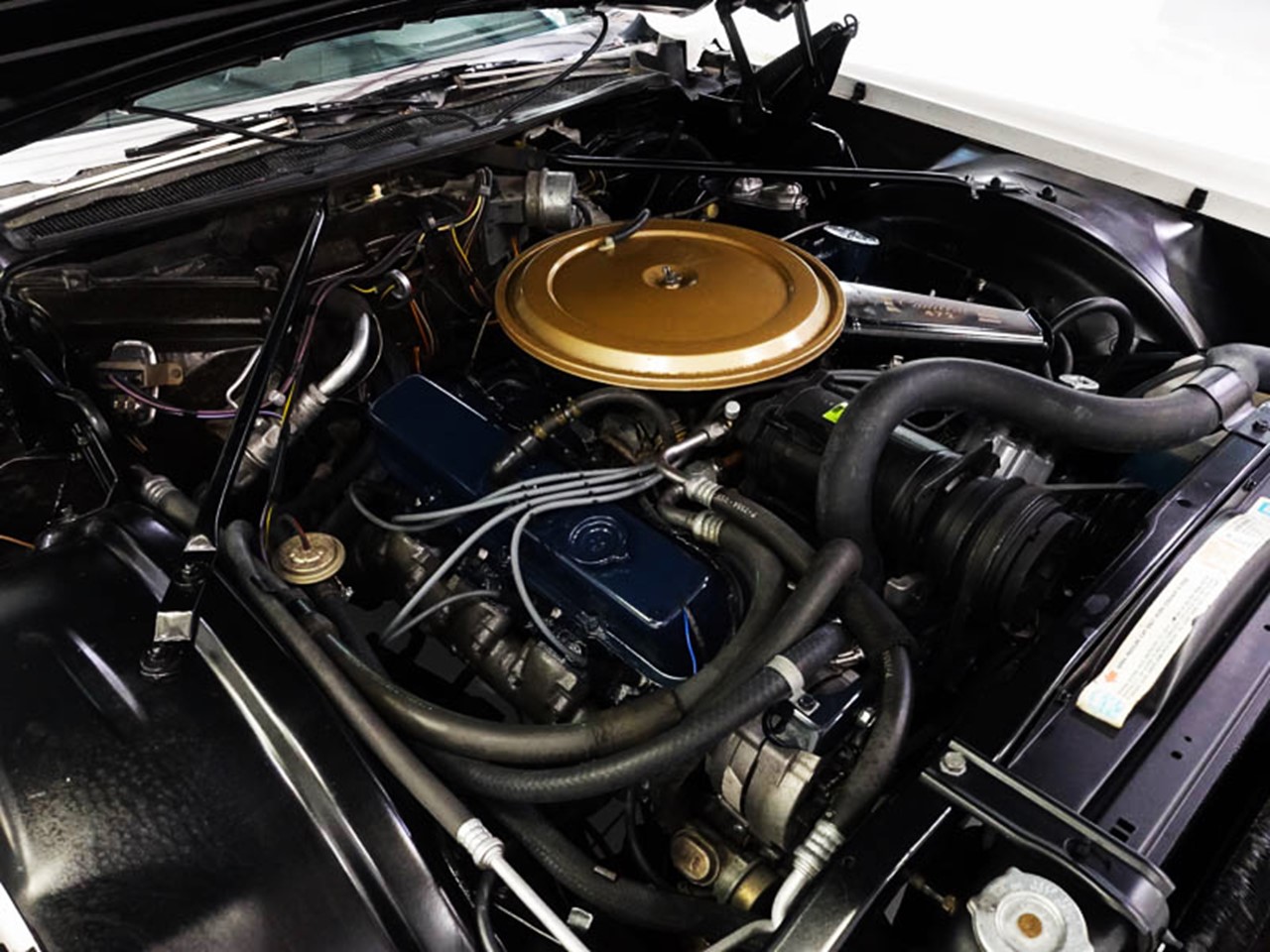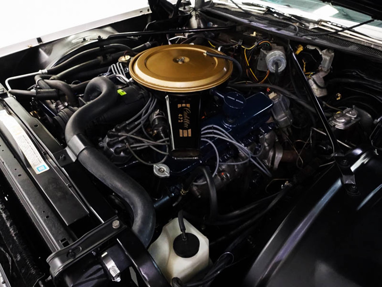 The spirited 7.7 litre 16-valve 472 CID V8 cranks an impressive 375 hp @ 4,400 rpm packing a prolific punch with 712 Nm of peak torque @ 3,000 rpm. Cadillac’s unsurpassed craftsmanship was never more evident. It is equipped with a Rochester 4-bbl downdraft Quadrajet carburetor with equalized manifold, mechanical fuel pump, dry-type air filter, and a new automatic choke. An Air Injection Reactor system was introduced to reduce hydrocarbons in the exhaust. The engine is built with a cast iron block and cylinder heads, overhead valves, and hydraulic lifters.