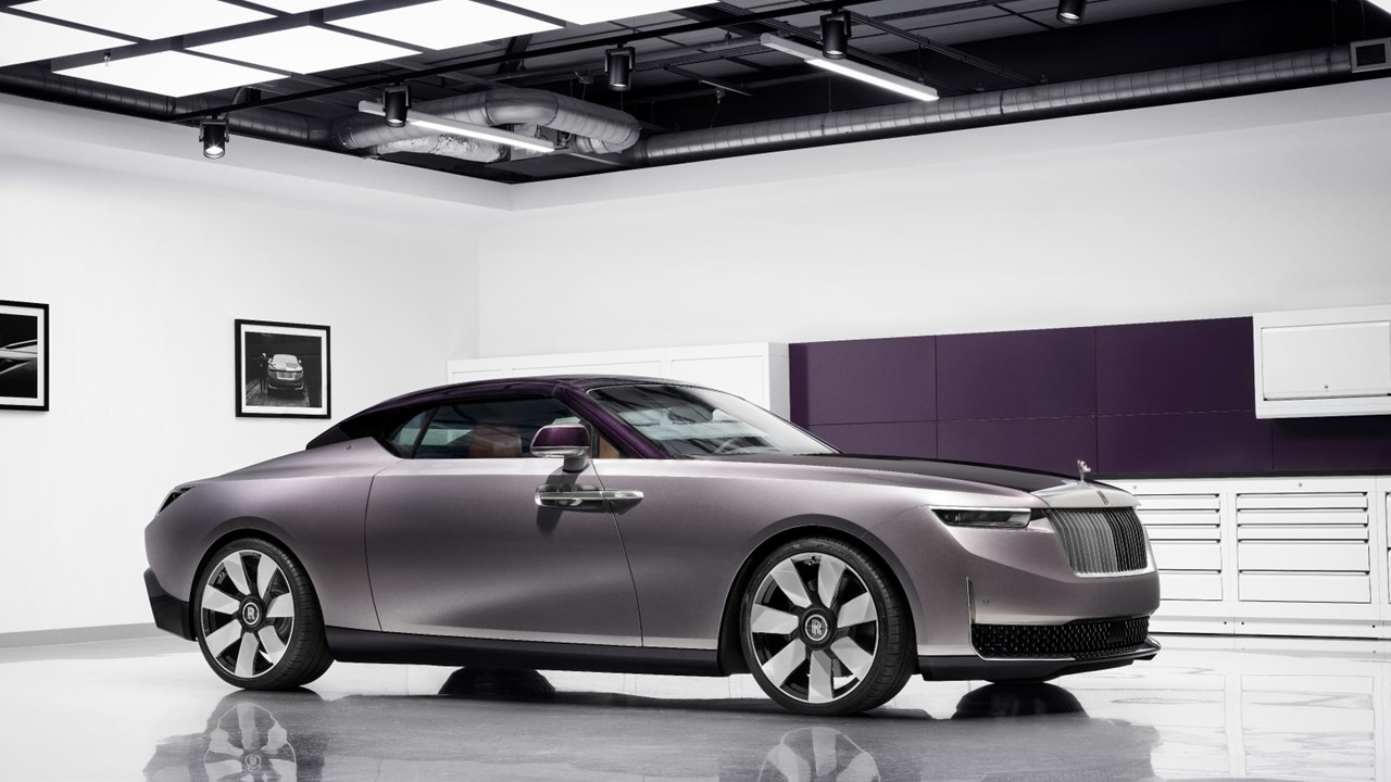 Even the elegant 22-inch mirror-polished aluminium wheels are exclusive to this special color palette. In the sunlight, the wheels reveal a gentle hint of mauve paint inside the pockets. This touch of class was inspired by the colorful lining of the patron’s favorite bespoke jacket.